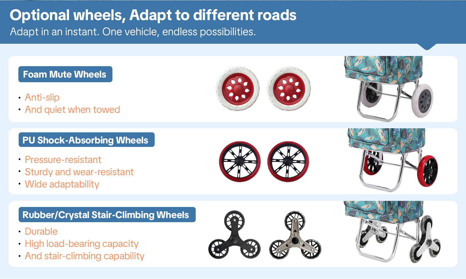 Whether shopping, moving household items, or transporting office or travel supplies, this heavy-duty foldable shopping cart combines strength, convenience, and customization options. Its 3-in-1 design makes it a must-have for apartment dwellers and anyone seeking a practical, versatile, and portable solution for everyday hauling tasks.