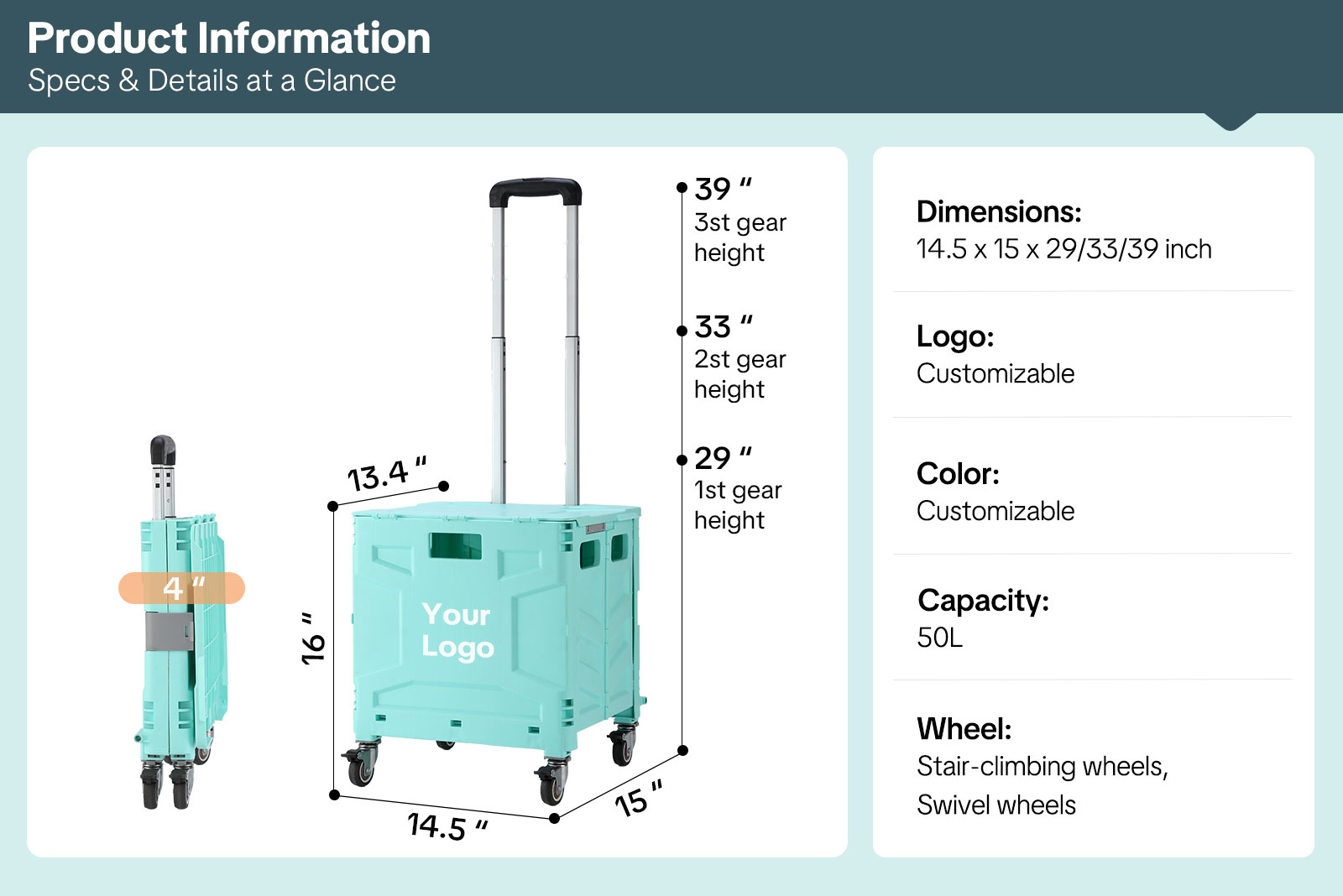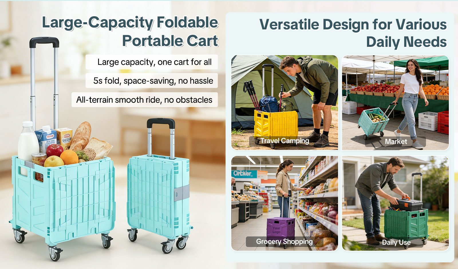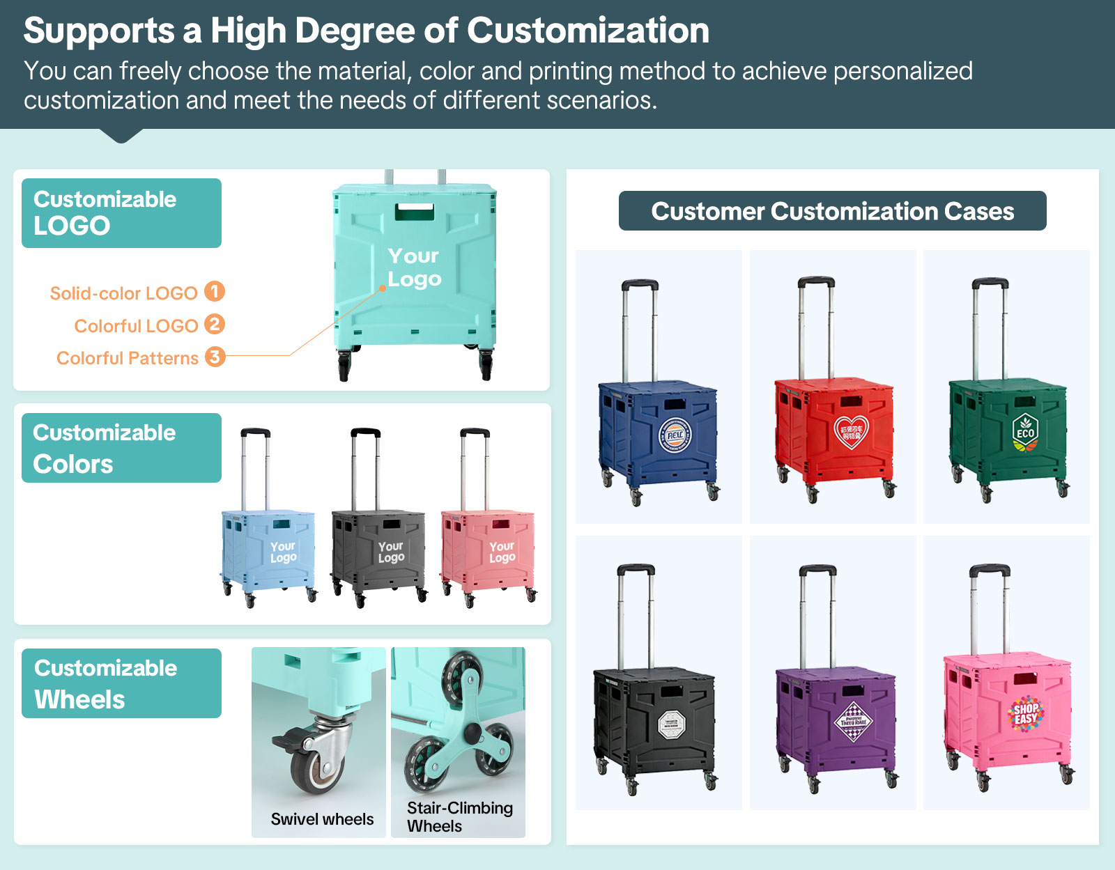 For businesses and brands, this trolley supports custom logo printing through silk screen, heat transfer, or embroidery, making it an excellent choice for corporate gifts, promotional giveaways, and private-label resale.