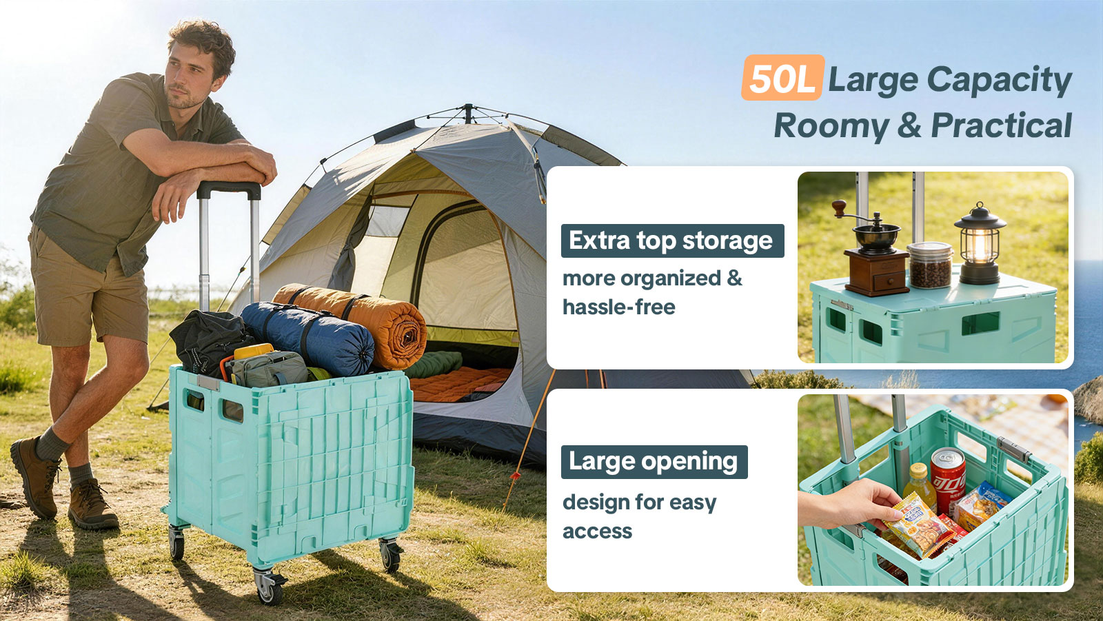 Its foldable design collapses flat in seconds for easy storage in closets, under beds, or in car trunks, making it ideal for small spaces. The included removable 600D Oxford fabric bag offers versatile storage for groceries, laundry, office supplies, or travel essentials. Securely attached during transport, the bag can be quickly removed for cleaning or replacement.