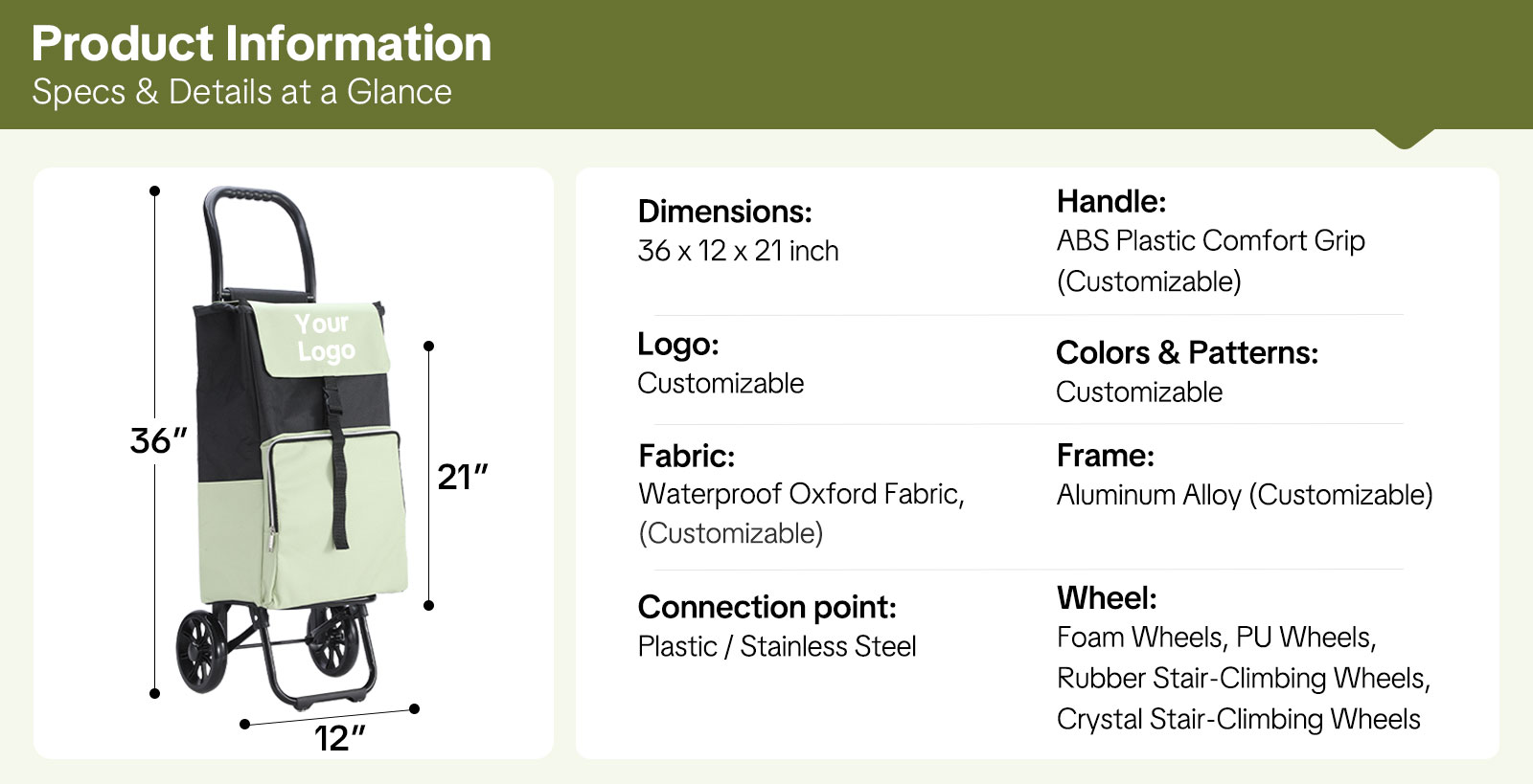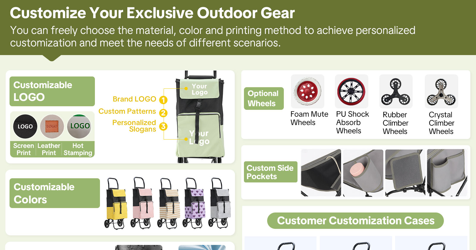 For businesses and brands, the cart offers custom logo printing through silk screen, heat transfer, or embroidery, making it ideal for corporate gifts, promotional giveaways, or private-label resale.