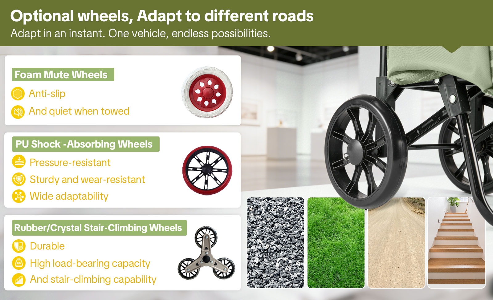 The foldable design makes storage a breeze. Collapse the cart flat to fit in car trunks, closets, or under beds, saving valuable space in small living areas. Equipped with smooth-rolling wheels, it glides effortlessly across a variety of surfaces, from tile and hardwood floors to pavement, ensuring convenience and ease of movement.