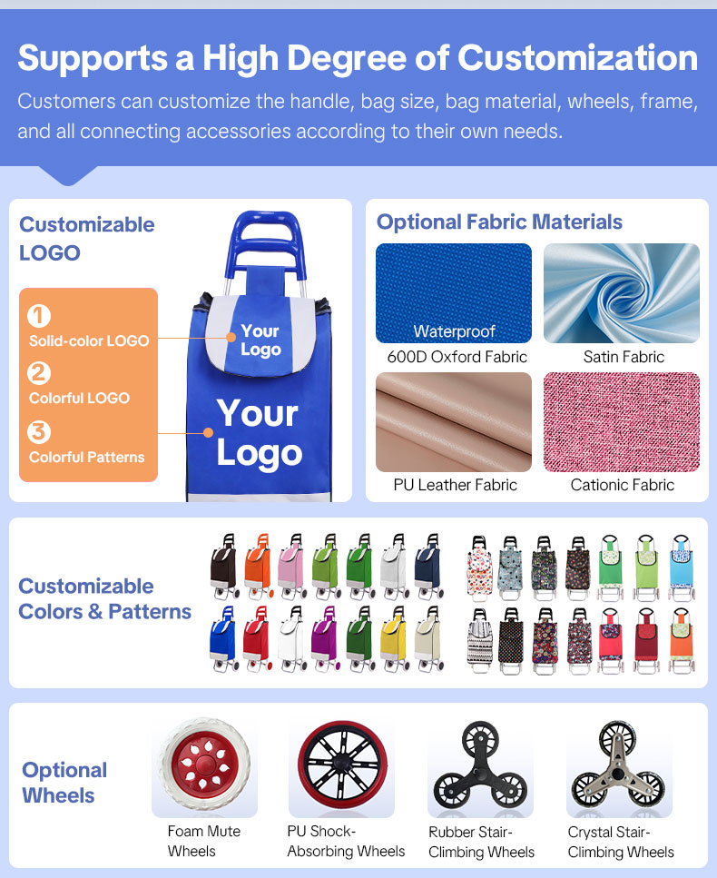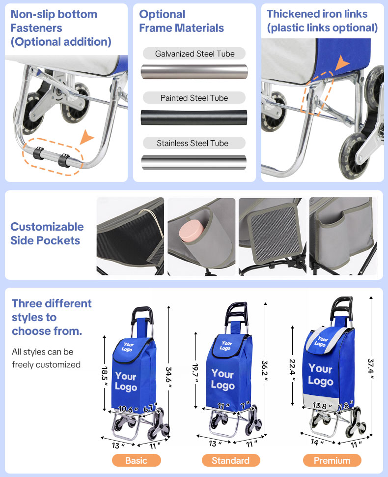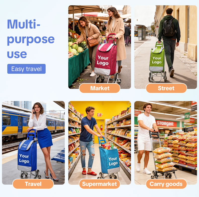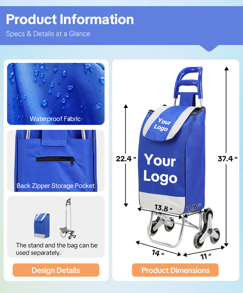 Customize Shopping cart for Groceries with Wheels and Removable Bag and Rolling Personal Handtruck Stair Climbing Cart