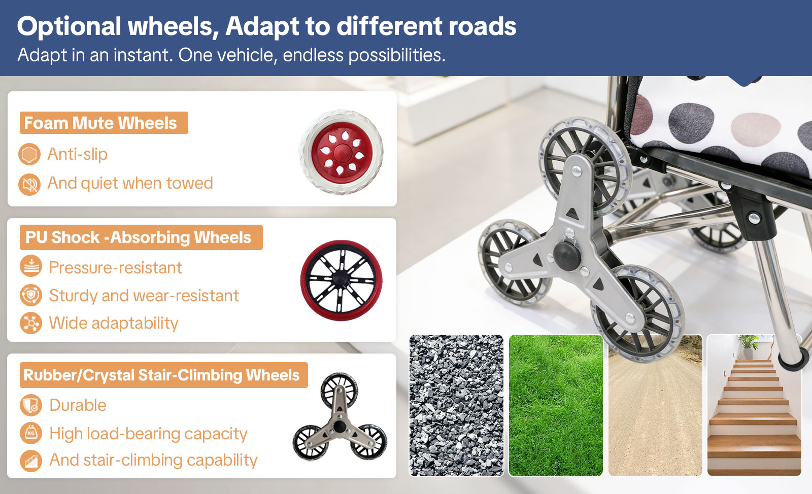 The foldable and compact design allows the trolley to collapse flat in seconds, making it easy to store in closets, car trunks, or under beds without occupying precious space. Equipped with high-quality, smooth-rolling wheels, it glides effortlessly across a variety of surfaces, including tile, hardwood, and pavement, ensuring safe and efficient transport of groceries, laundry, or boxes.