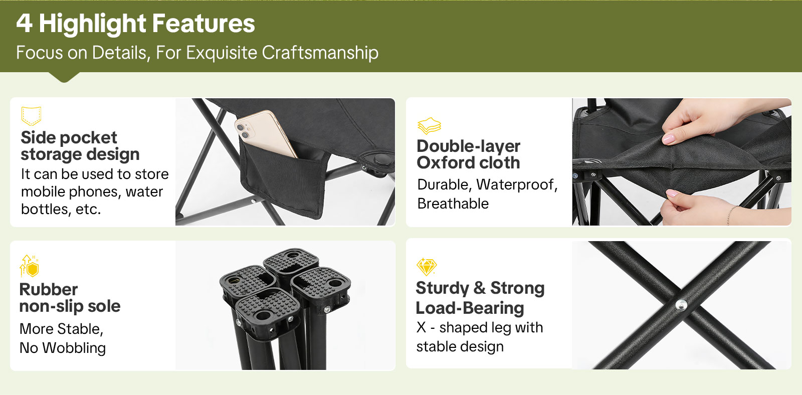 Versatile Use – Great for camping, beach, fishing, picnics, festivals, team events, and backyard gatherings. Also perfect as a folding chair for hiking, picnics, camping, or a travel-friendly lightweight chair.